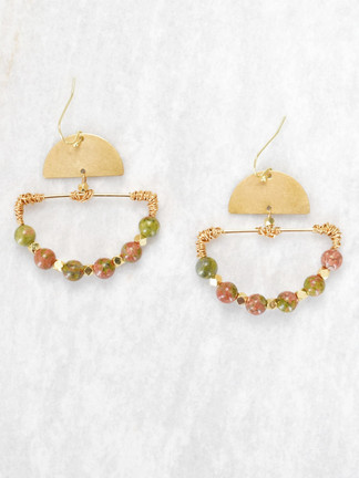 Unakite - semi-precious stone with mining origins from many countries including the United States in the Unaka mountain range, Sierra Leone and South Africa. It's composed of a speckled mix of deep greens, salmon pink, and clear quartz. It's often seen as a stone of grounding and awareness through the third eye.